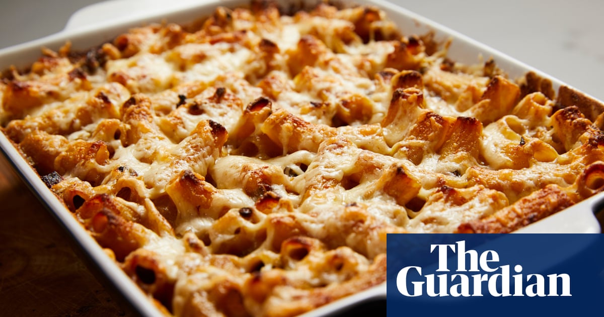 Vegan baked macaroni cheese.